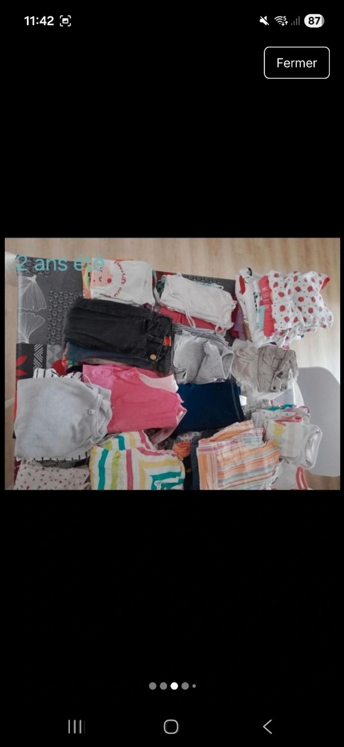 Bonjour Je vends un lot de vêtements été fille en 2 ans Les vêtements ne sont pas tâchés et pas de trou Il y a 81 vêtements Il y a de toute marque