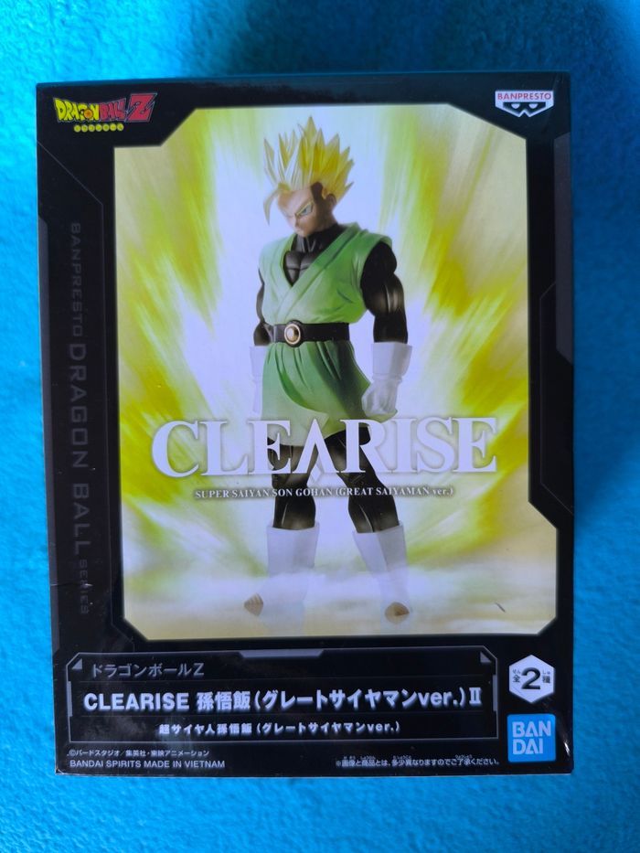 Figurine Son Gohan Super Saiyan (Great Saiyaman Ver. II) - Clearise - Officielle Import Japon Je vends cette magnifique figurine Son Gohan Super Saiyan (Great Saiyaman Ver. II) de la gamme CLEARISE, produite par Banpresto / Bandai Spirits. Une pièce sublime qui capture à la perfection la prestance de Gohan dans sa tenue iconique de Great Saiyaman, en version Super Saiyan 💥 🔸 Produit 100% officiel – Import direct du Japon 🔸 Neuf, jamais ouvert, boîte scellée 🔸 Provenance : UFO Catcher japonais (machine à pince – édition exclusive) 🔸 Taille : environ 18 cm 🔸 Matière : PVC ⚠️ Boîte en excellent état, quelques micro-traces possibles dues au transport. ✅ Remise en main propre possible 📦 Frais de port à la charge de l’acheteur 📬 Envoi rapide et soigné, emballage renforcé 🎁 Idéal pour les fans ou collectionneurs de Dragon Ball Z souhaitant agrandir leur collection avec une pièce rare et élégante ! 📩 N’hésitez pas à me contacter pour toute question ou photo supplémentaire.