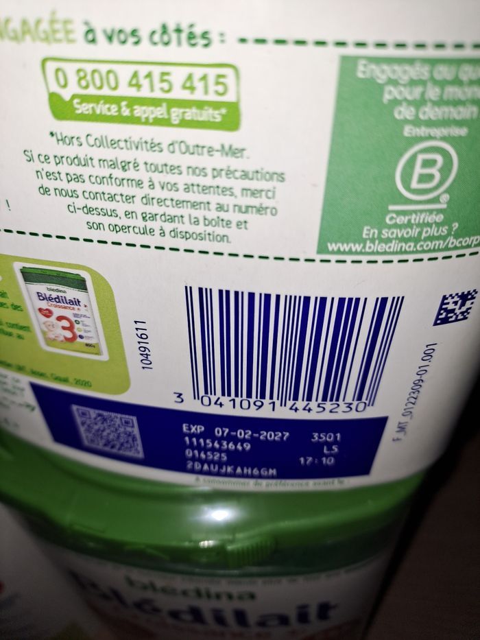 Vends lot de 6 boîte bledilait 1 boîte 2ème Âge date de péremption 07/02/27 5 boîte de 3ème Age 27/11/26 . 15/06/27 31/01/27