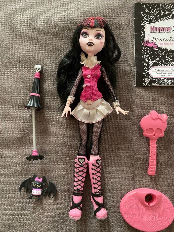 Poupée Draculaura (élastiques noirs) avec sa chauve souris ComteFabulous Série Wave 1 Monster High Vous achetez ce que vous voyez sur les photos
