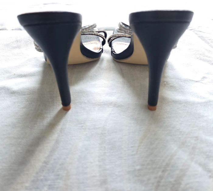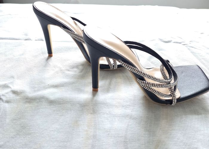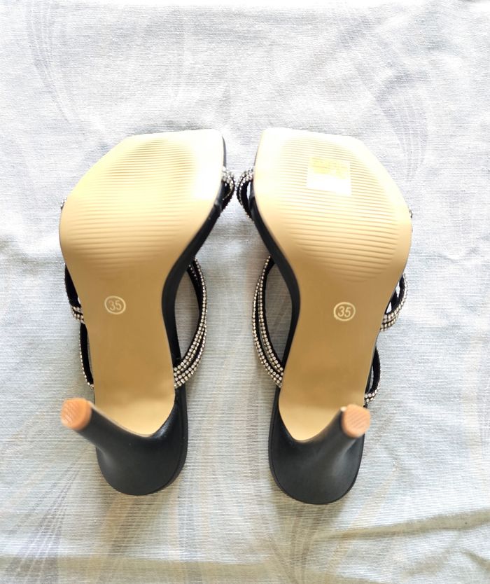 Sandales à talons strass satinées Noir Très bon état 35 - photo numéro 8