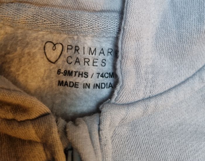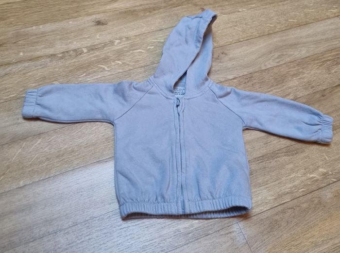 Sweat à capuche gris pour bébé, taille 6-9 mois (74 cm), marque Primark Cares. Confortable et chaud, parfait pour les journées fraîches. Fermeture zippée sur le devant, poignets et taille élastiqués pour un bon maintien. Capuche douce et enveloppante, en très bon état, peu porté. Idéal pour un look cosy et pratique. #primark #primarkcares #sweatbébé #vestebébé #bébé #6mois #9mois #modebébé #vêtementsbébé #sweatcapuche #sweatgris #bébégarçon #bébéfille #lookbébé #tenuebébé #manteaubébé