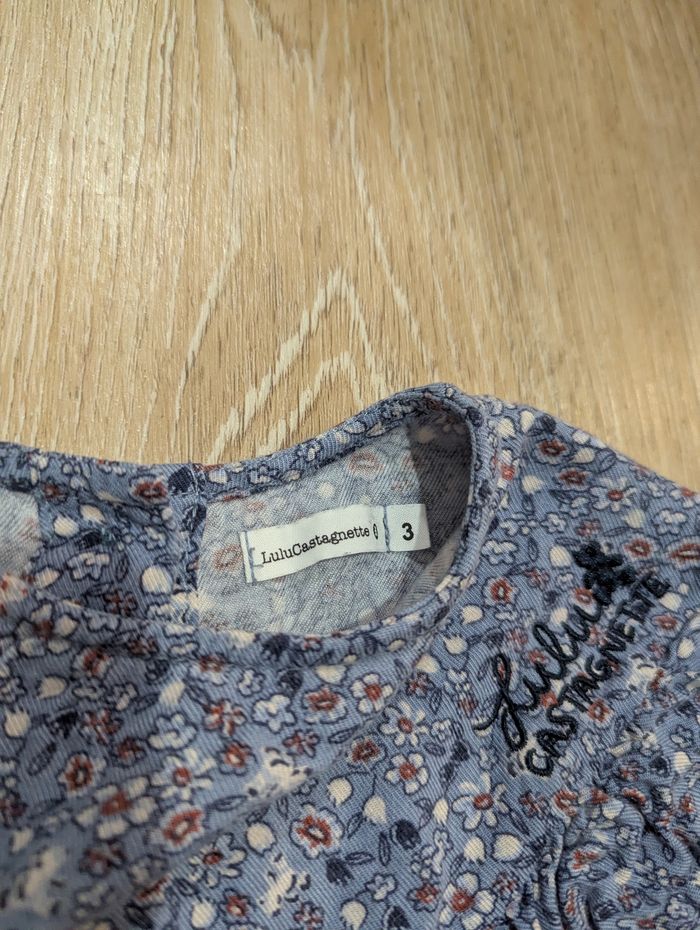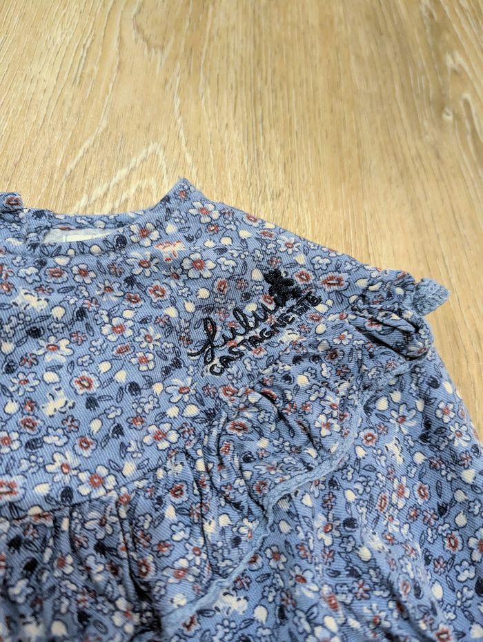 T-shirt manche longue avec col Taille 36 mois En très bon état Marque Lulu castagnette Motif fleur Tissus fluide