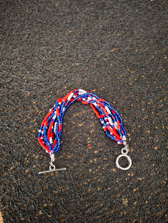 Bracelet multi-rangs en perles de rocaille, fait main, inspiration tricolore. Pièce unique, légère et élégante