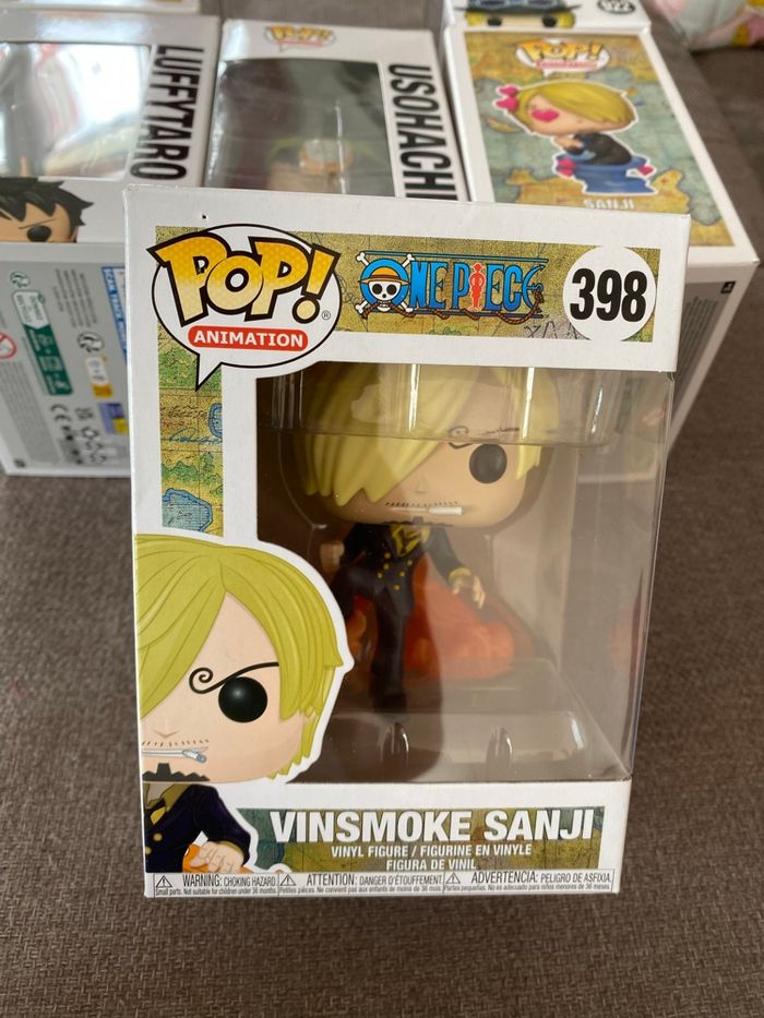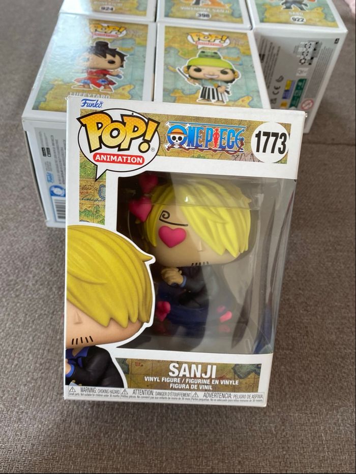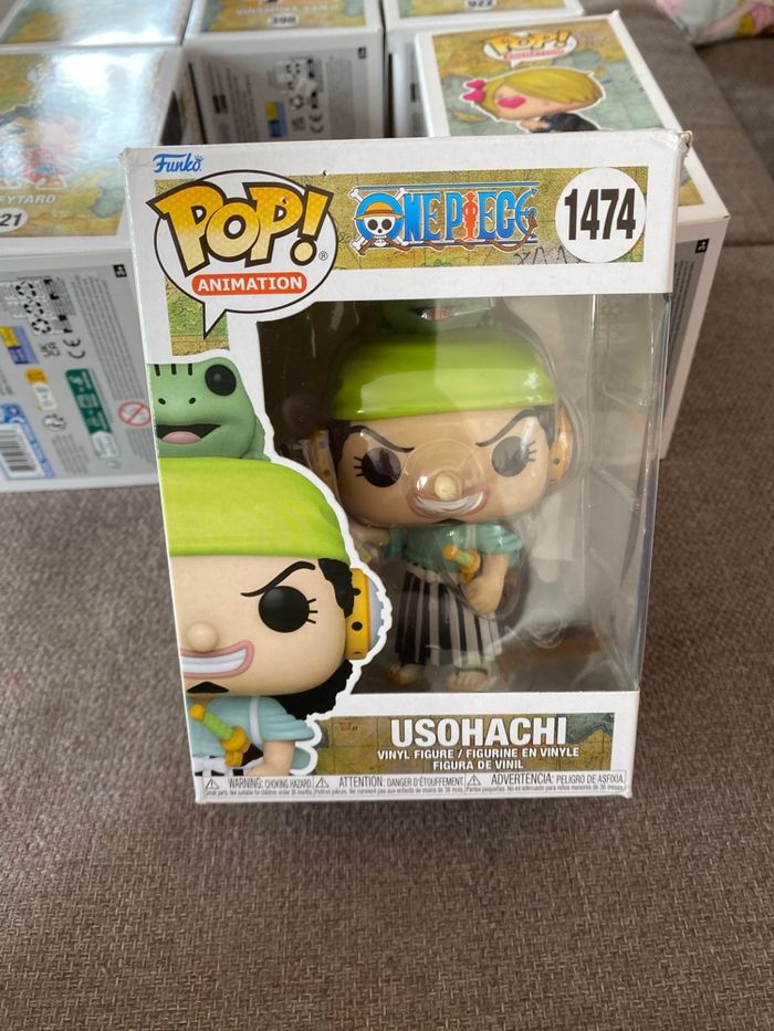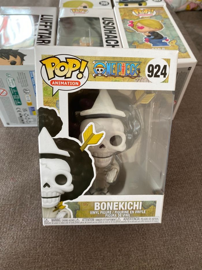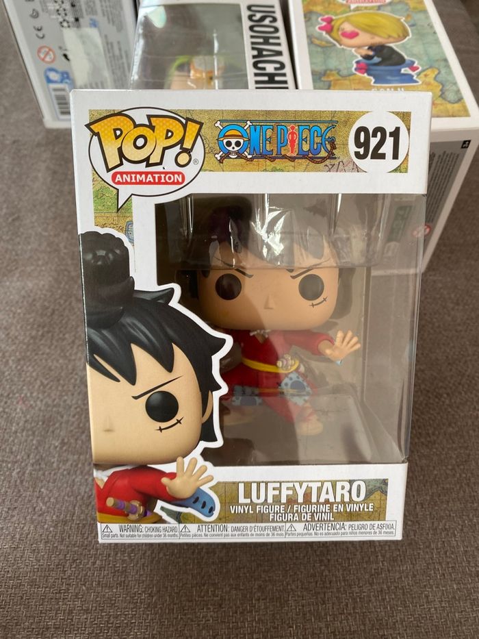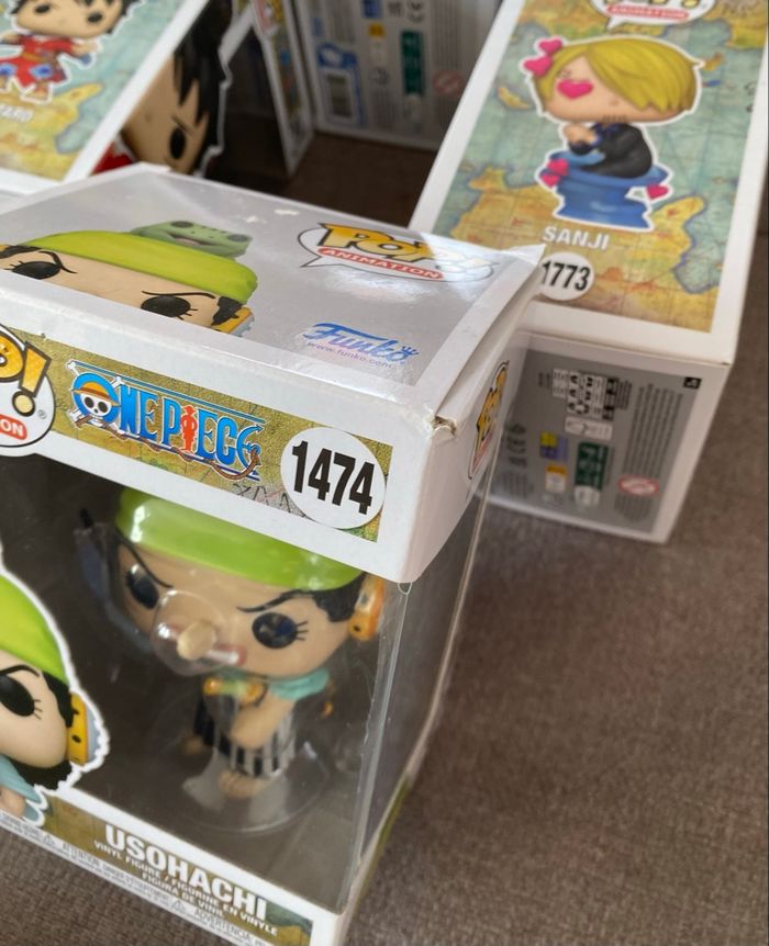 Lot de sept POP One Piece : - Bonekichi 924 - Vinsmoke Sanji 398 - Sanji 1773 - Monkey D.Luffy 98 - Sabo 922 - Usohachi 1474 (haut de la boîte légèrement abîmée) - Luffytaro 921 Figurines en vinyle Neuves, jamais sorties de leurs boîtes Vous achetez ce que vous voyez sur les photos