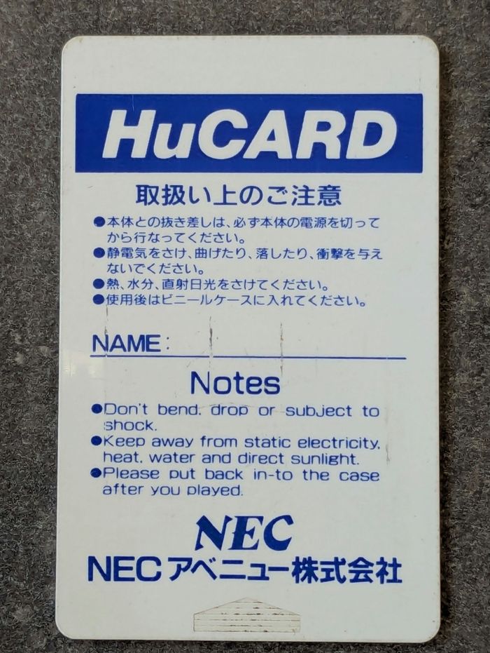 Vends cette hucard pour pc engine qui fonctionne parfaitement. Plein d autres jeux pc engine disponibles me demander. Envoi rapide et soigné