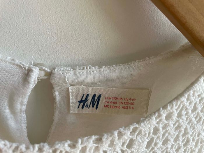 Robe T 4/6 ans Vraiment très belle Ecru en crochet Doublée Marque "H&M" En coton doublée de polyester Très bon état Envoie sous 48 h