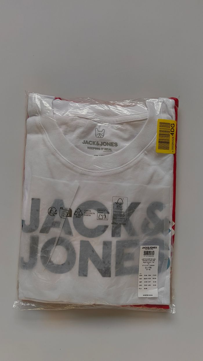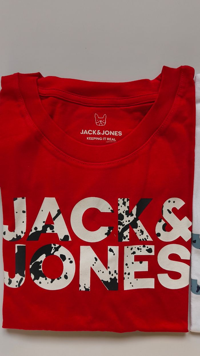 Lot de 2 t-shirts jack&Jones neufs encore emballés. Pour adolescents de 15-16 ans, convient également aux hommes qui mettent du XS et S car il taille grand.