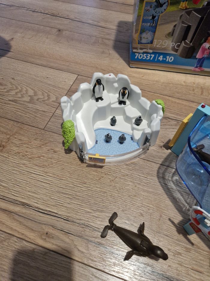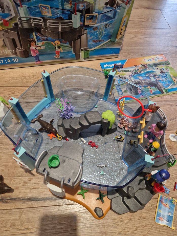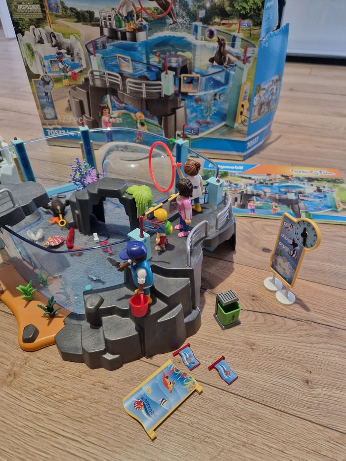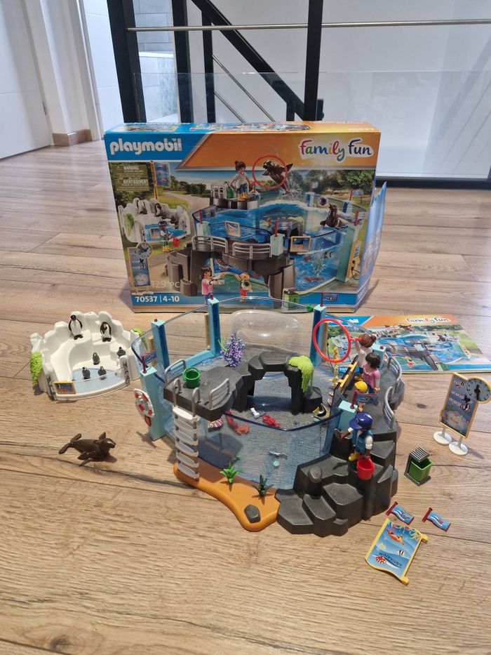 Playmobil Family Fun 70537 Journée à l'aquarium et enclos pour pingouins Tres bon etat avec boite et notice Quelques drapeaux sont cassés mais ne dérange en rien et peuvent être coller