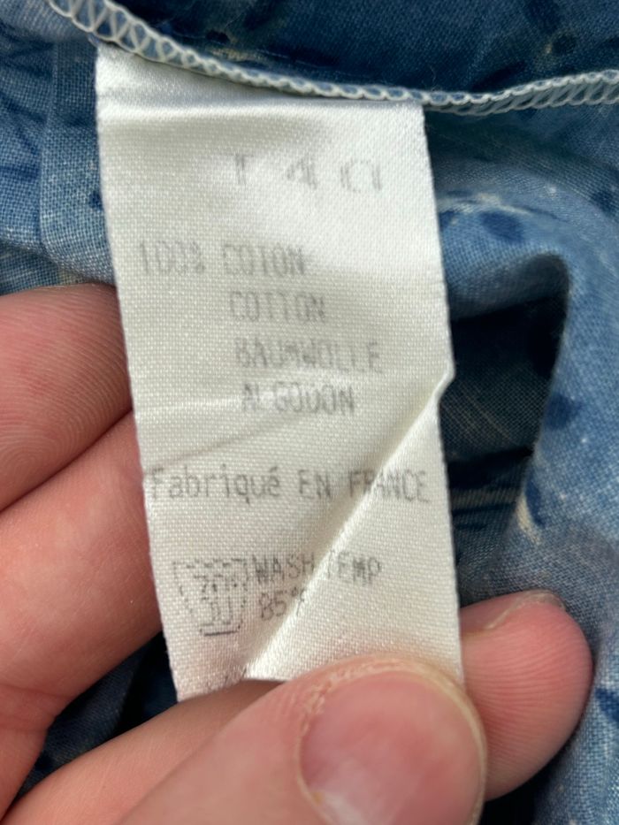Jupe courte chic bleu nuit imprimé fleurs blanches délicates, coupe droite boutonnière devant, poches latérales pratiques. Fabriquée en France 100% coton respirant, parfaite casual été ou mi-saison polyvalente. 📏 Longueur: 45 cm 📏 Largeur: 34 cm 📐 Taille: L 40 🎨 Couleur: bleu fleuri 🧵 Matières: 100% coton 🛍️ N’hésitez pas à faire un lot j’ai beaucoup d’articles en ventes. 📦 Envoi ou remise main propre à Limoges. #jupfleurie #jupebleue #jupe40 #jupeL #jupcoton #jupfrancaise #jupcourte #jupedroite #jupeete #jupbouton #jupesleeves #jupmotif #jupcasual #juprespirante #modeete #jupefleurs #jupdroite #jupfrance #jupeplage