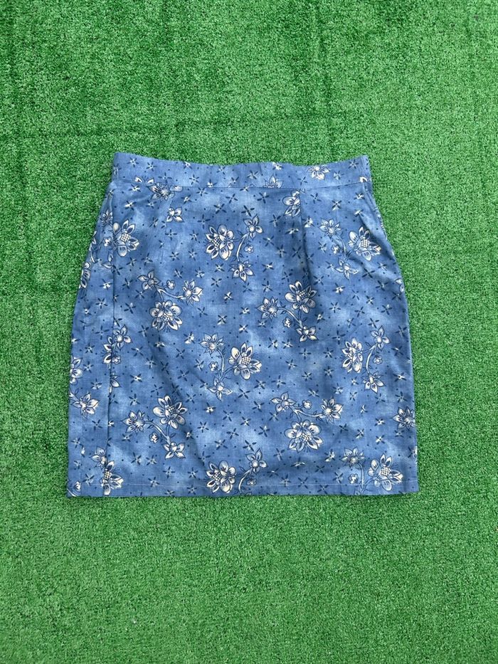 Jupe fleurie bleue coton 100% taille L 40  - photo numéro 1
