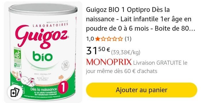 Lait infantile Guigoz Bio 1er âge - 3 boîtes NEUVES - photo numéro 1