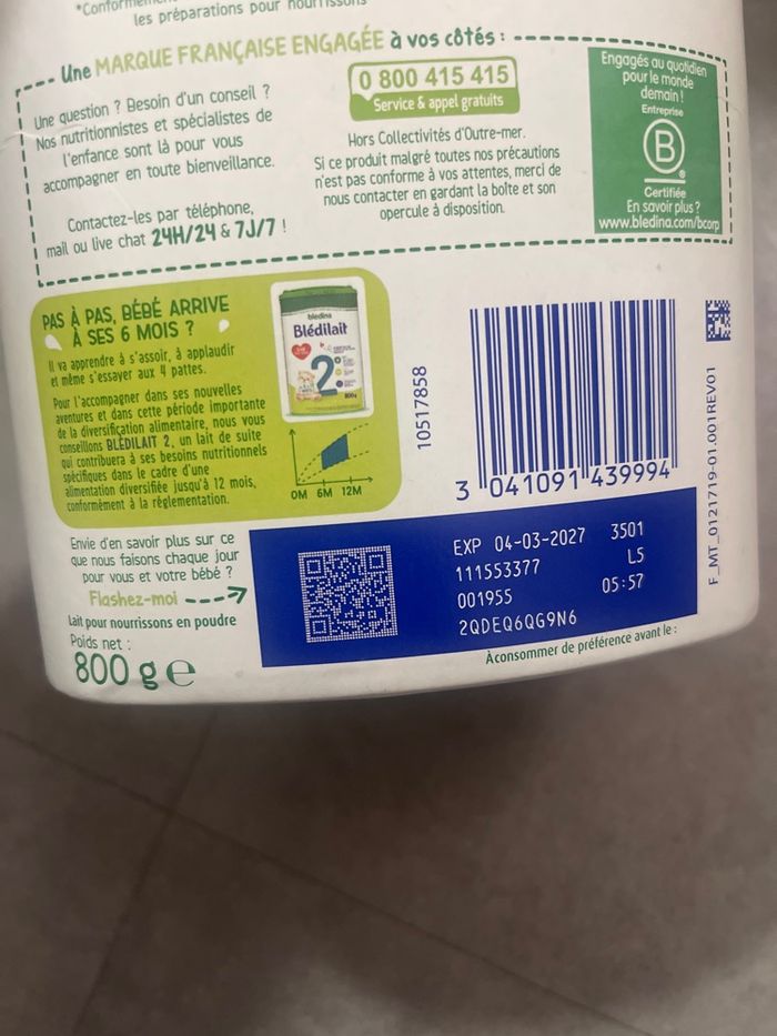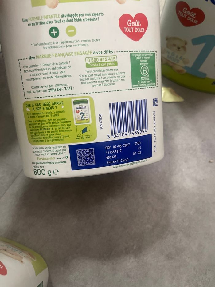 Lait infantile neuf, jamais utilisé. Un seul paquet disponible. Août 2026.