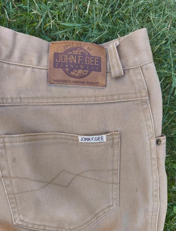 Pantalon jean coupe droite kaki, en très bon état 100% cotton Correspond à une taille S/M Longueur 93cm Tour de bassin 51cm*2 Tour de taille 44cm*2