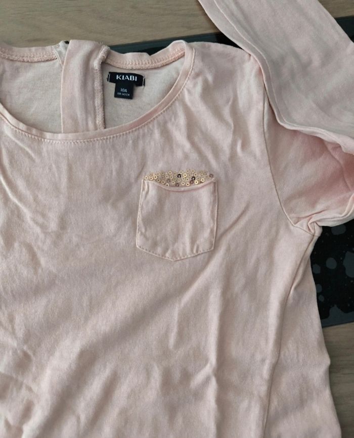 T-shirt manches longues, léger, rose pâle, très bon état. Marque KIABI, taille 10 ans