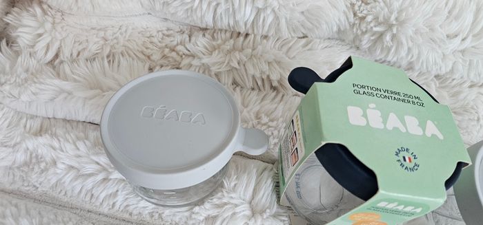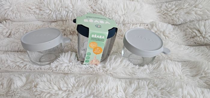 Lot de 3 pots en verre Béaba. ☆ 2 pots de 150ml en très bon état ☆ 1 pot de 250ml Neuf.