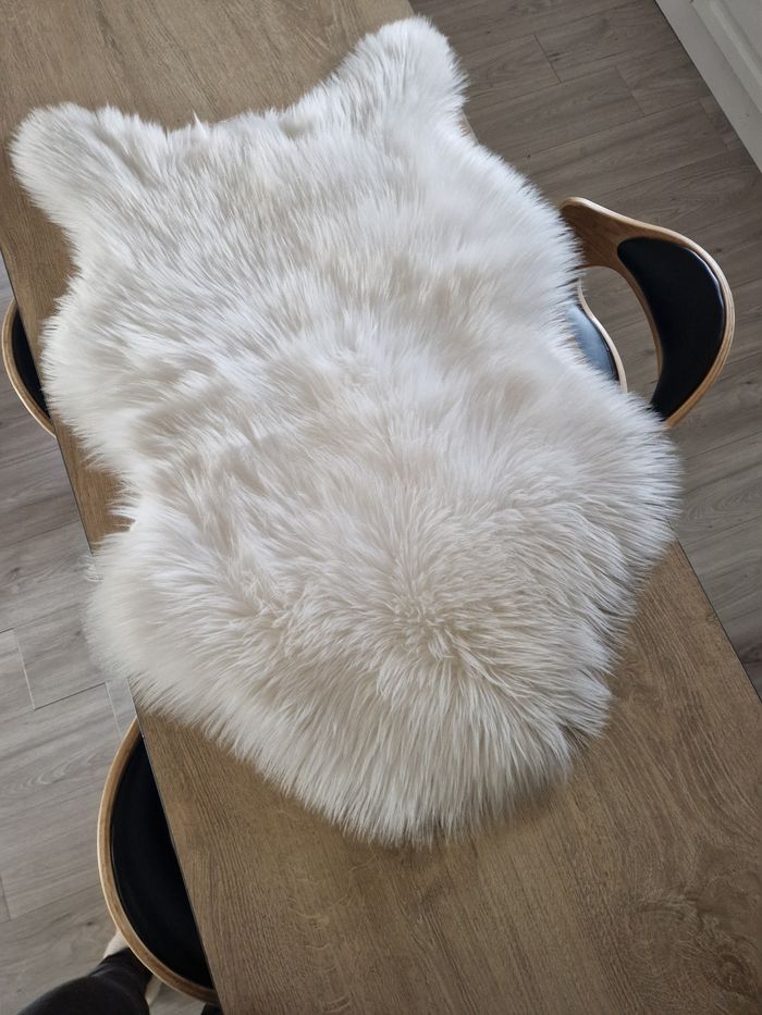 Petit tapis blanc fausse fourrure en parfait état