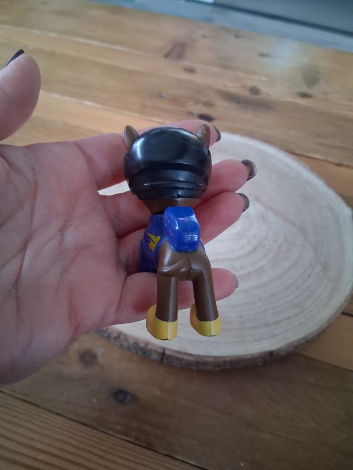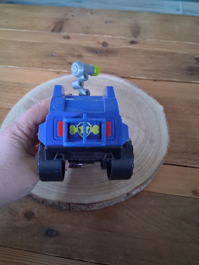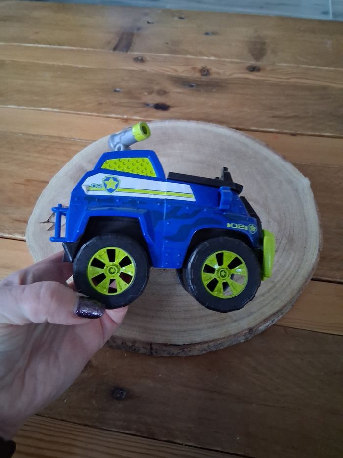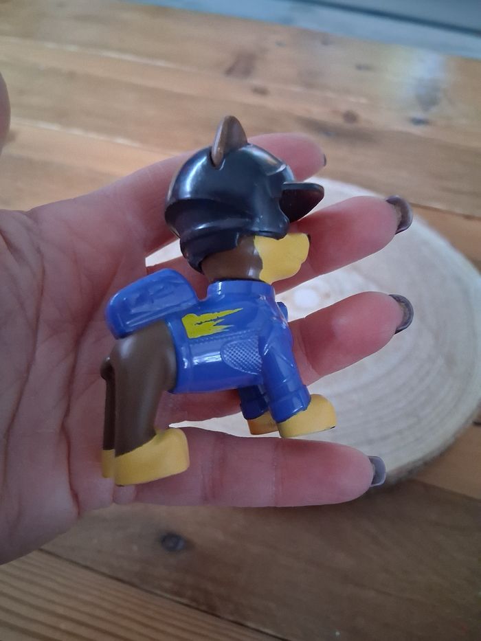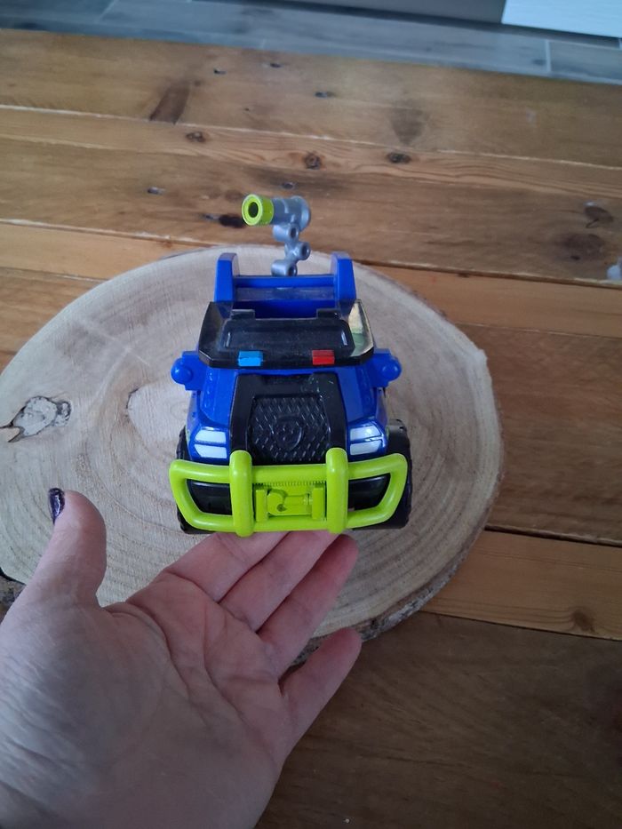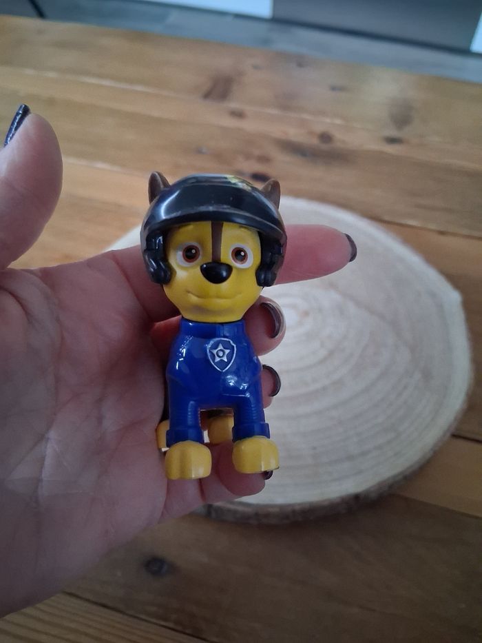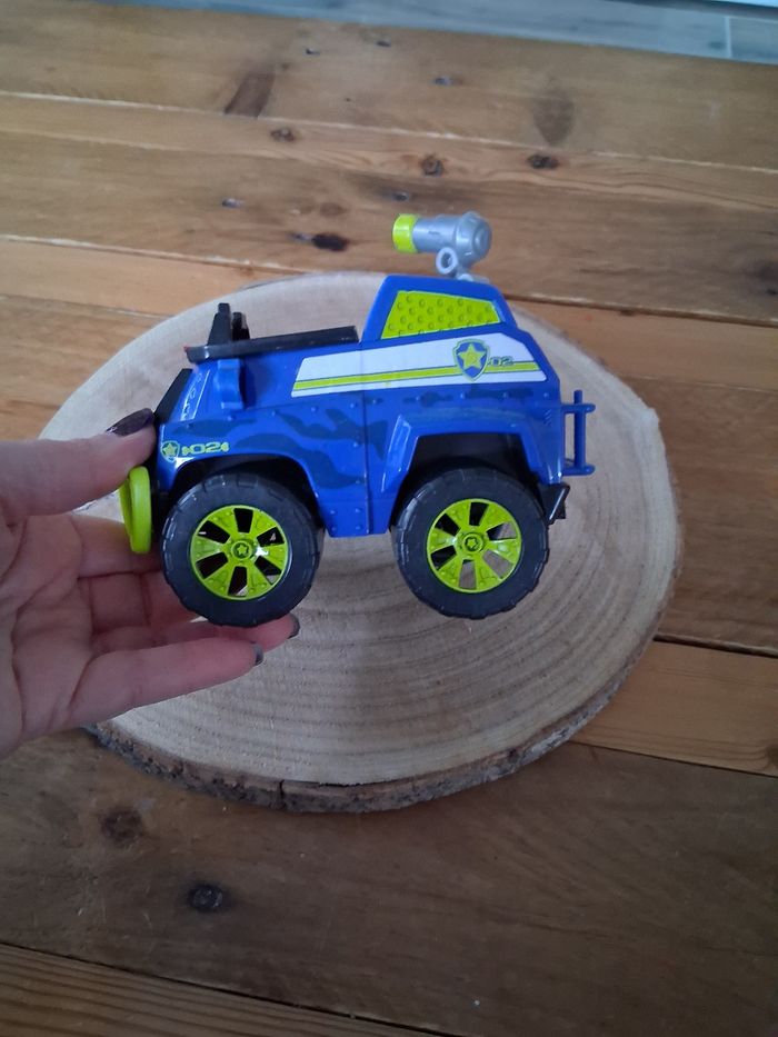 Chase de la pat Patrouille et son véhicule en très bon état. Quels manque de peinture sur certains endroits de la figurine et de la voiture.