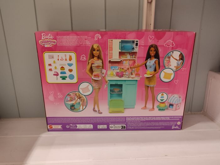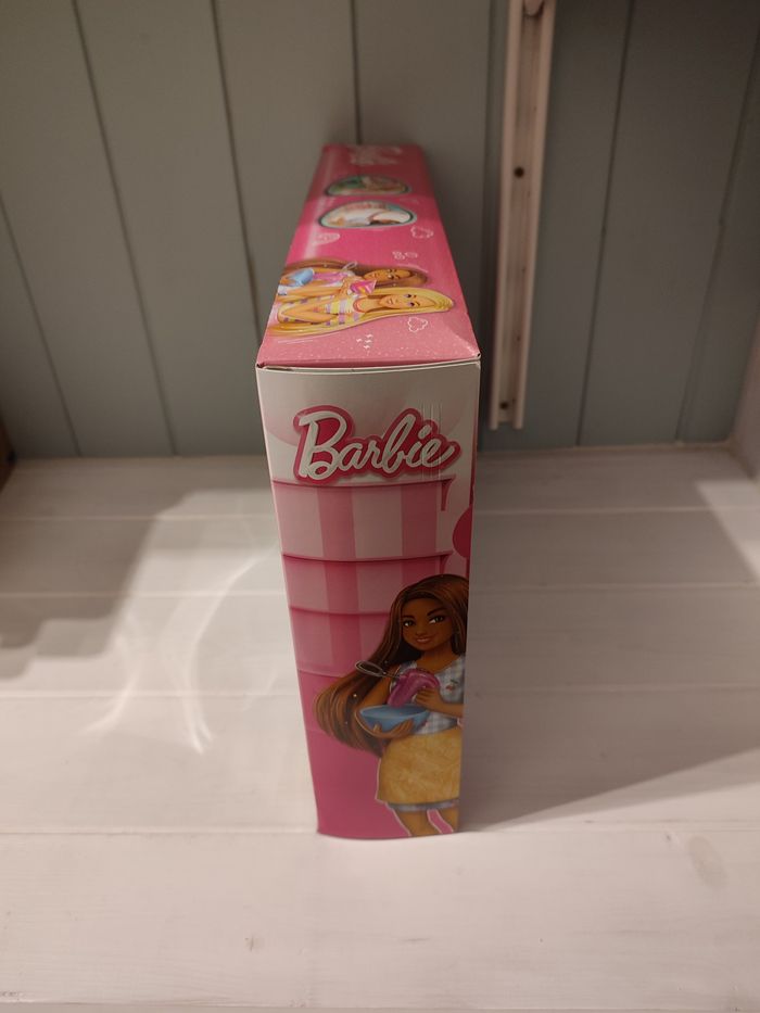 Barbie - cuisine et pâtisserie boite d'origine scellée envoi rapide et soigné Les enfants peuvent préparer des petits gâteaux, une tarte en forme de cœur ou un gâteau. Chaque poupée porte une robe amovible et des chaussures colorées, ainsi qu'un tablier pour rester propre pendant la préparation des pâtisseries. Les enfants peuvent cuisiner des histoires très gourmandes avec un four coloré doté d'un plan de travail, d'un micro-ondes et de portes fonctionnelles. Plus de 15 pièces permettent aux jeunes pâtissiers de jouer à la confection de desserts, du mélange à la décoration, en passant par le partage avec les autres. Contenu : 1x ensemble de jeu Barbie Cuisine et Pâtisserie, 2x poupées, 1x cuisinière et plus de 15x accessoires