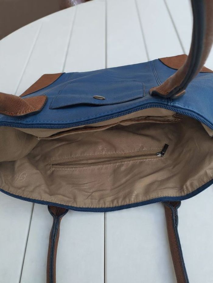 grand sac cabas fourre-tout marque Hestia en simili cuir bleu et marron - photo numéro 3