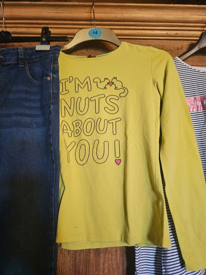 Lot avec 2 t shirts 1 pantalon 1 blouse longues manches plus 1 autre be gratuite
