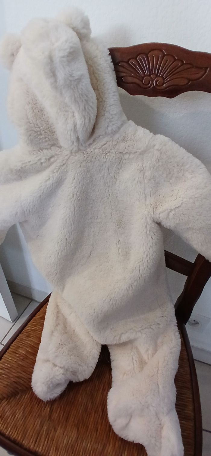 Une belle et douce combinaison hiver comme un ours. De bonne qualité. Beige et intérieure tissu fleurie . Votre enfant n'aura pas froid .