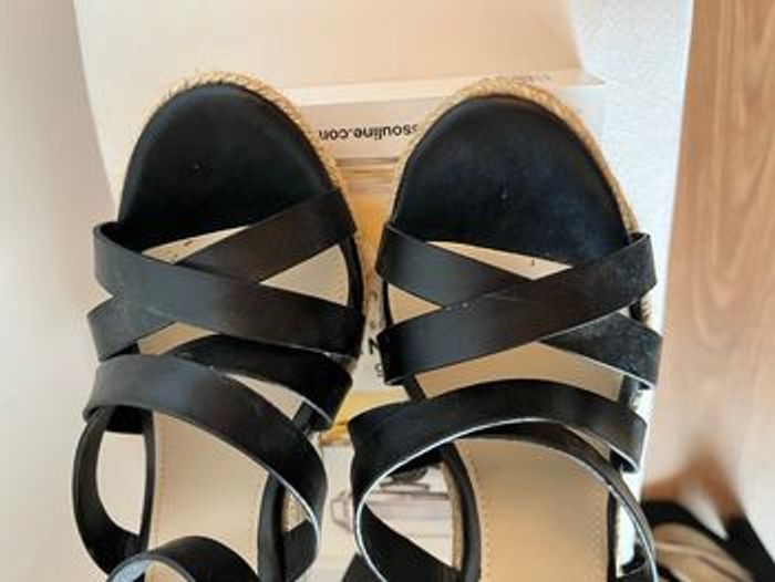 Sandales compensées noires simili cuir/cordages JustFab T40 TBE 🌞 - photo numéro 2