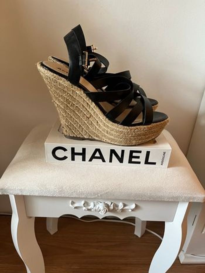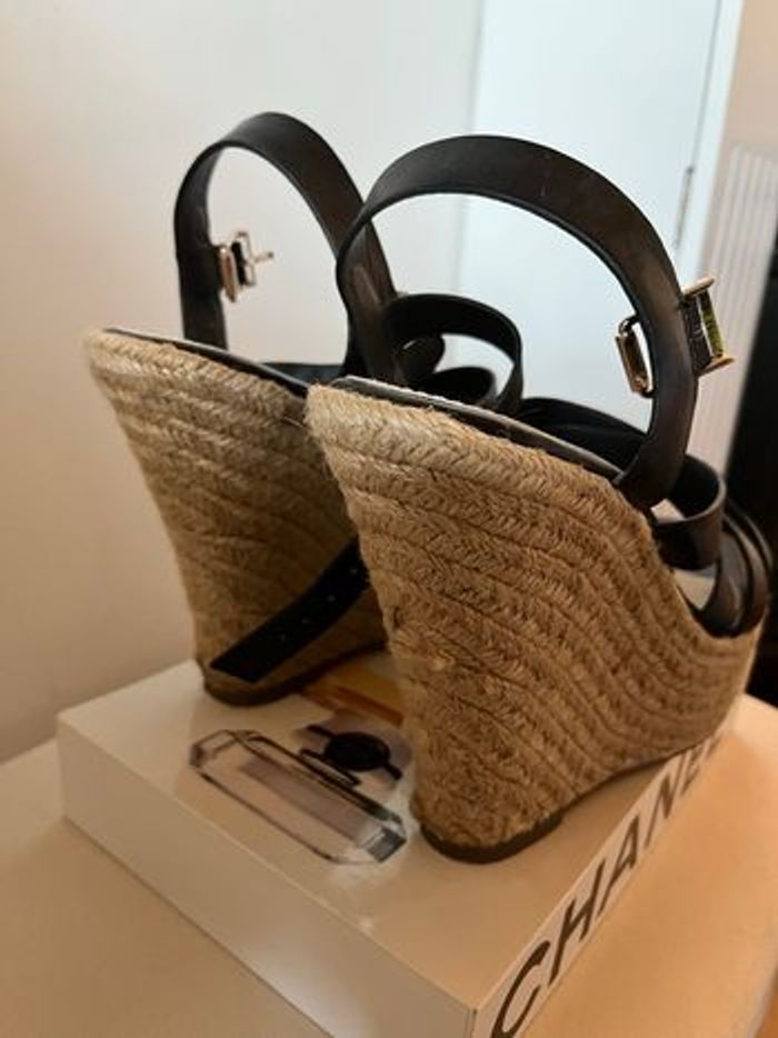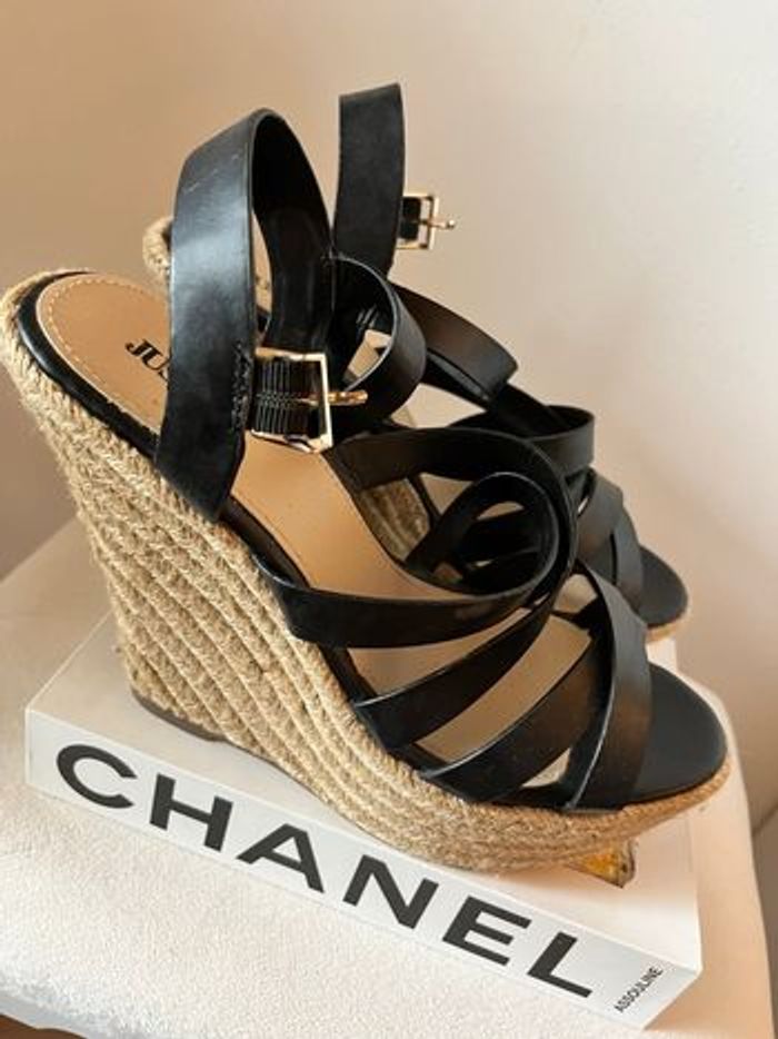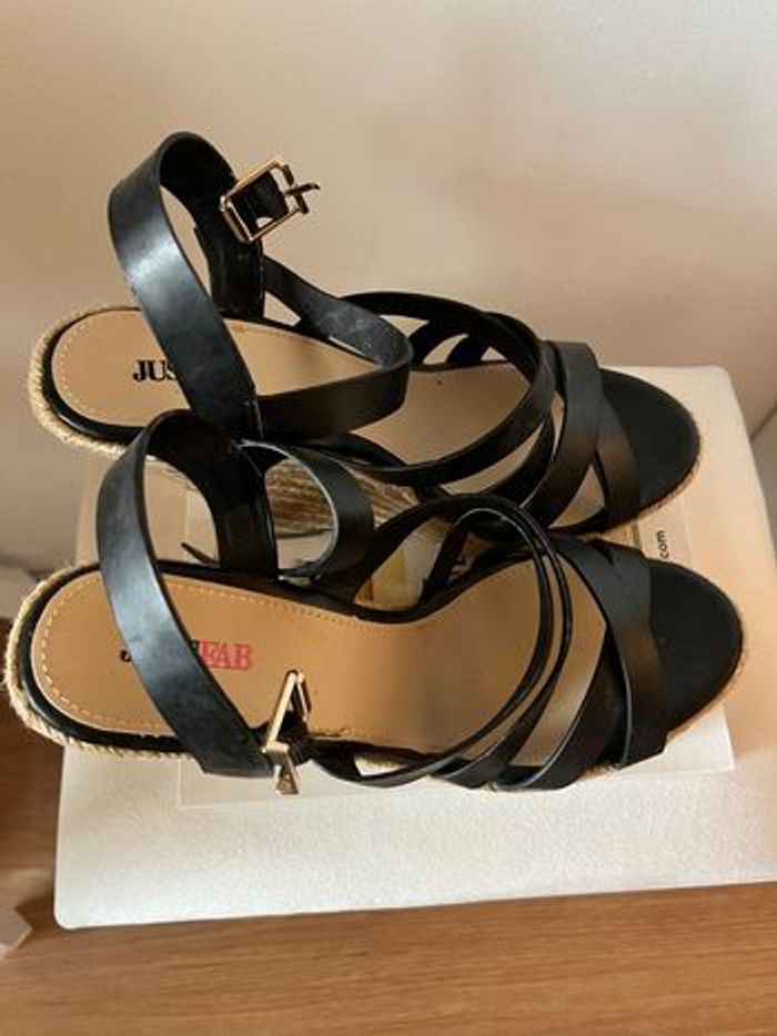 Sandales compensées noires simili cuir/cordages JustFab T40 TBE 🌞 - photo numéro 1