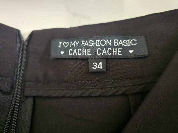 ✅ Jupe courte noire Cache Cache - TBE - Taille 34 ✔ fermeture zippée invisible ✔ 2 poches latérales et pinces ✔ 74 % polyester, 19 % viscose, 7 % élasthanne ✔ Longueur 42 cm - largeur taille à plat 35 cm ✔ envoi rapide et soigné - remise sur lot