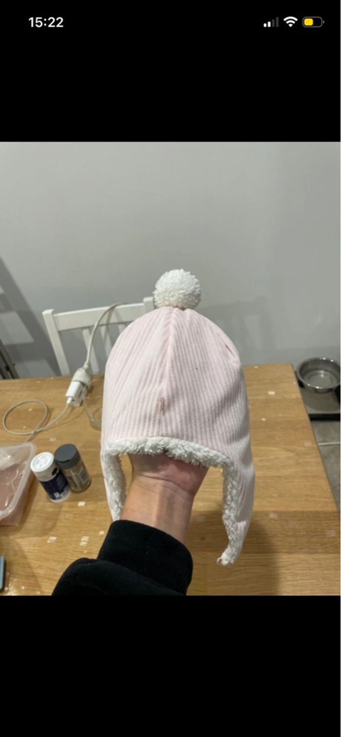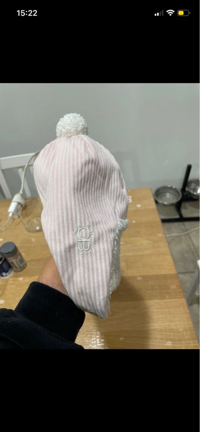 Bonnet avec scratch Plus d’étiquette, me souviens plus de la taille exacte mais je l’ai acheté à ma fille quand elle avait 4-5mois
