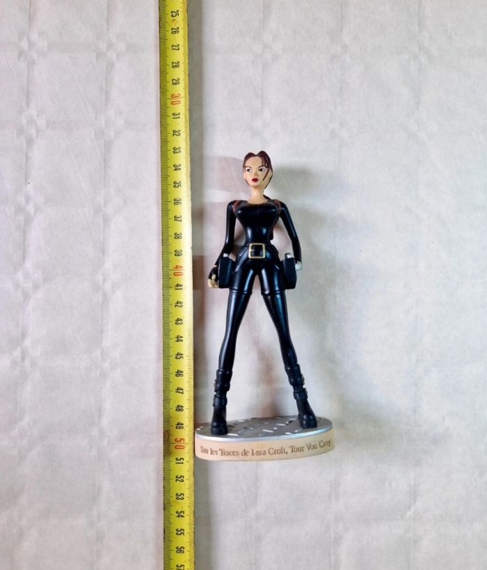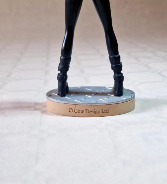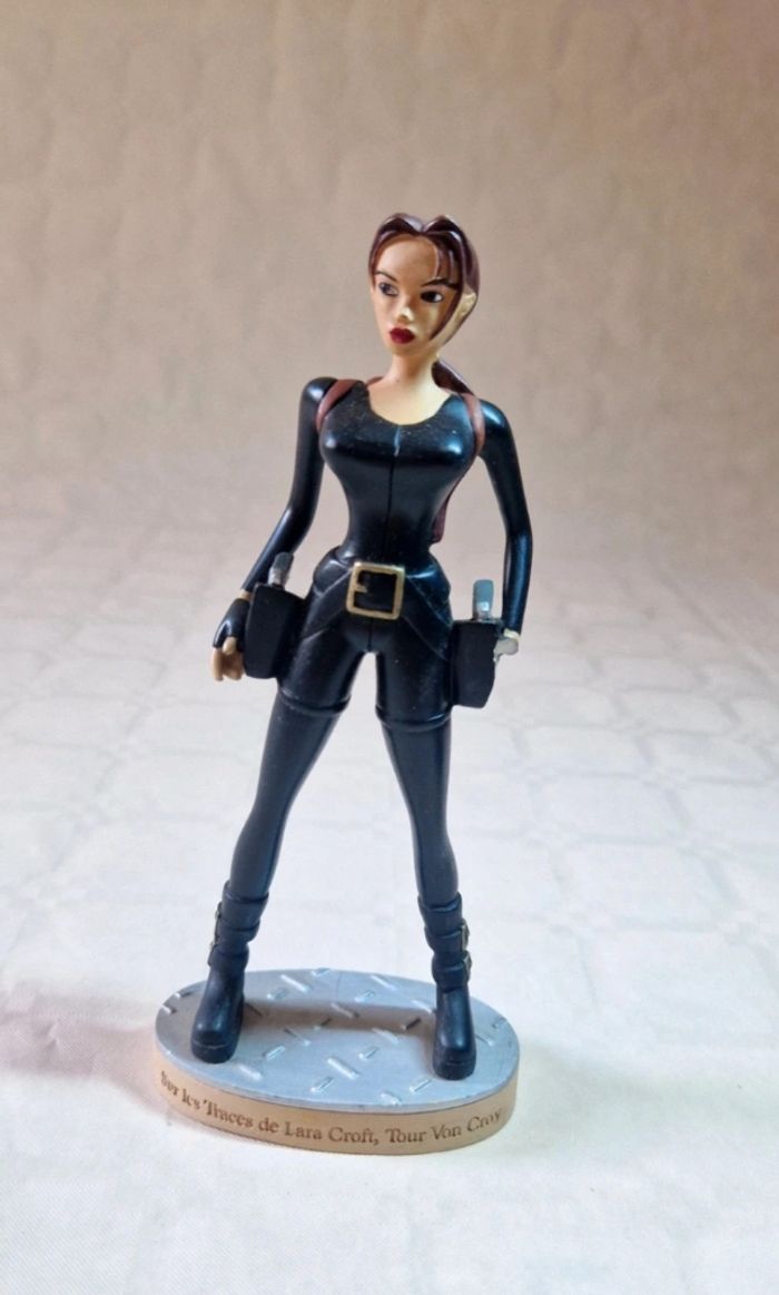Bonjour ! Je vous propose cette figurine de collection de Lara Croft, issue de la célèbre licence Tomb Raider. Ce modèle représente l'aventurière dans sa tenue furtive noire, inspirée du jeu "Sur les Traces de Lara Croft" (Chronicles), spécifiquement pour la mission à la Tour Von Croy. Une pièce indispensable pour les fans de retrogaming et les collectionneurs de l'univers Core Design. ​État : État général : Très bon état esthétique. Détails : La figurine est complète et fixée sur son socle d'origine. On peut y lire l'inscription "Sur les Traces de Lara Croft, Tour Von Croy" sur le devant et la mention "© Core Design Ltd." à l'arrière. Dimensions : Elle mesure environ 16 cm de hauteur ​#laracroft #tombraider #chronicles #surlestracesdelaracroft #voncroy #figurine #collection #retrogaming #coredesign #eidos