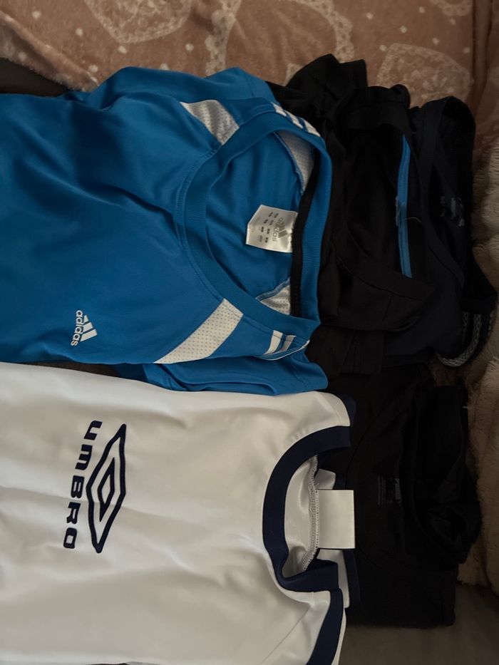 5 tee-shirts 1 puma noir 1 umbro blanc 2 addidas noir 1 addidas bleu