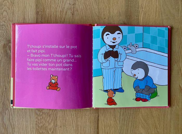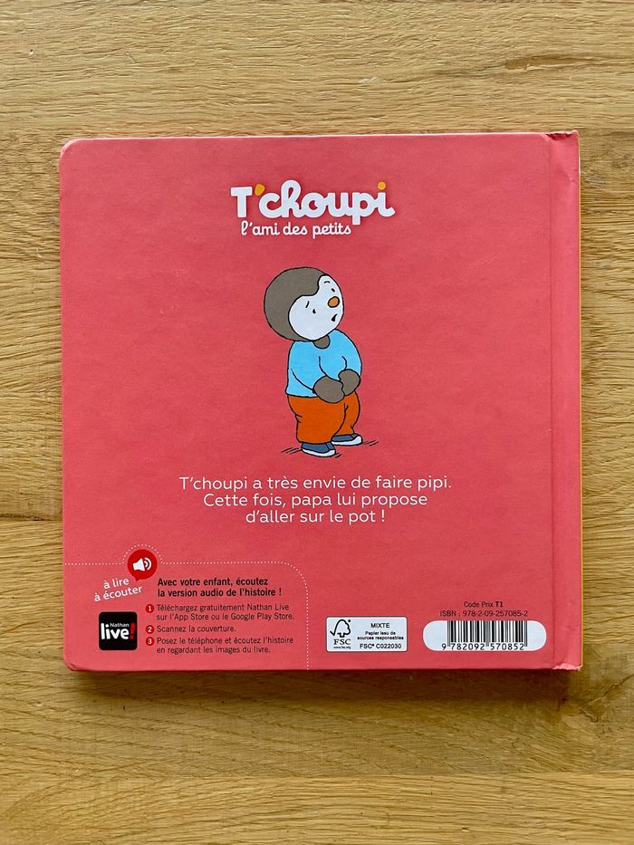Livre T'choupi va sur le pot. Dimensions : 16,2 x 16,8 x 0,8 cm Âge recommandé : dès 12 mois Histoire à lire ou à écouter via l'application gratuite Nathan Live.