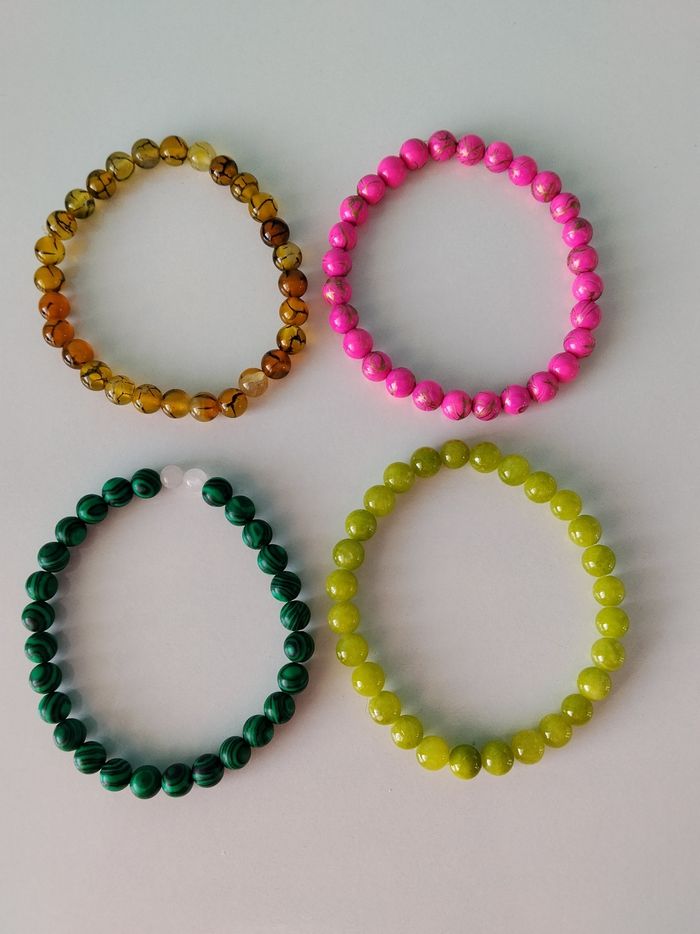Vends un lot de 4 bracelet en pierre naturelle malachite, veine de dragon, agate.. en lithotherapie les pierres apportent apaisement protection et bien être, je vends aussi d autres articles pensez à faire un lot pour activer la réduction et économiser sur les fdp