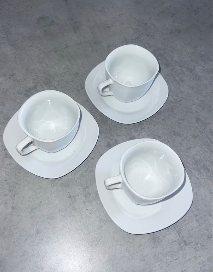 Lot de 3 tasses et sous tasses Coloris blanc 7 cm de hauteur 8.5 cm de diamètre Je réponds rapidement aux messages Envoi rapide et soigné