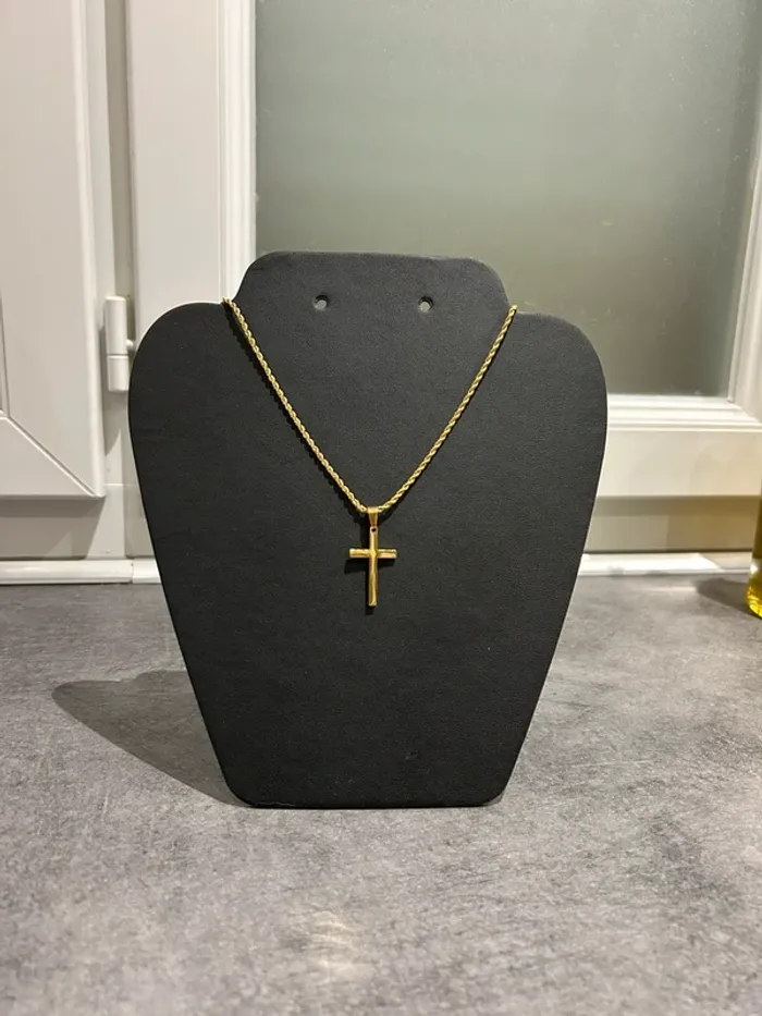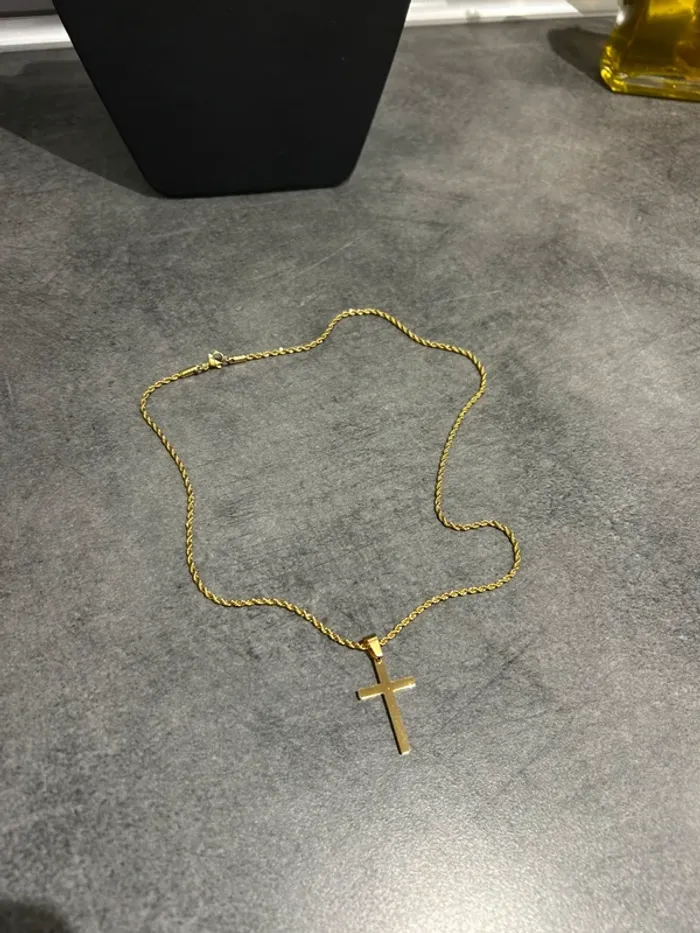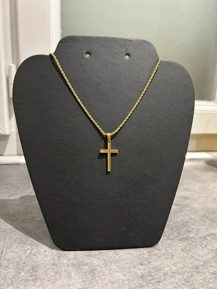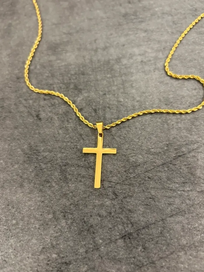 👕 : Chaine Collier Croix Doré en Acier Inoxydable 🎨 : Doré 📏 : 50cm N’hésitez pas à m’envoyer un message privé pour plus d’informations 📩