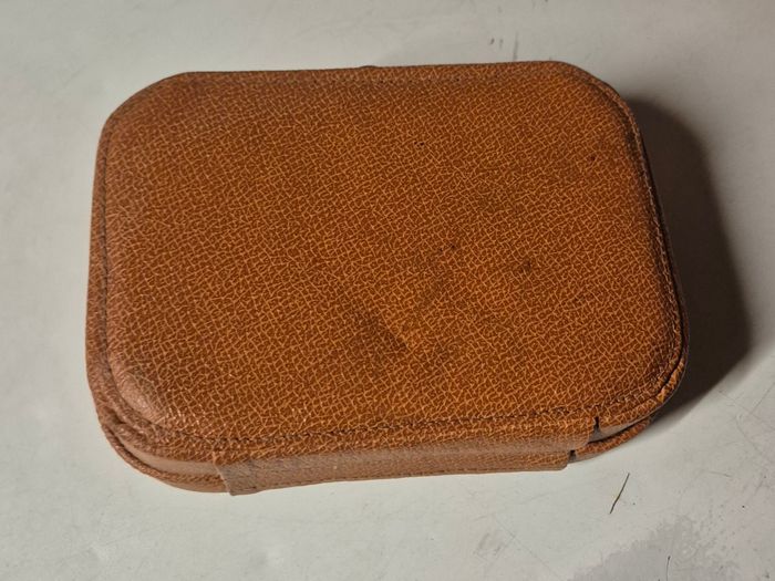 Trousse de toilette ancienne en simili cuir marron, complète et en très bon état. L’intérieur comprend plusieurs contenants métalliques, deux flacons en verre, un petit pot cylindrique et un miroir intégré sous rabat. Fermeture par clip métallique, finitions soignées, design rétro typique des années 50/60. Dimensions : 20 cm de largeur, 15 cm de longueur, 8 cm de hauteur. Idéal pour collection, décoration vintage, ou reconstitution d’ambiance rétro. Objet rare, élégant et fonctionnel, parfait pour les amateurs d’accessoires anciens de voyage. #troussevintage #necessairedevoyage #toiletteancienne #accessoirevintage #retrotravel #vintagefrance #designretro #flaconsanciens #miroirvintage #valiseancienne #vintagehome #collectionretro #objetancien