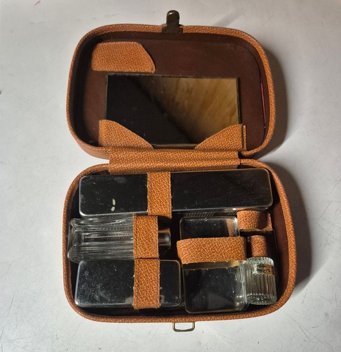 Nécessaire de toilette vintage trousse de voyage complète avec miroir et flacons années 50/60 - photo numéro 1