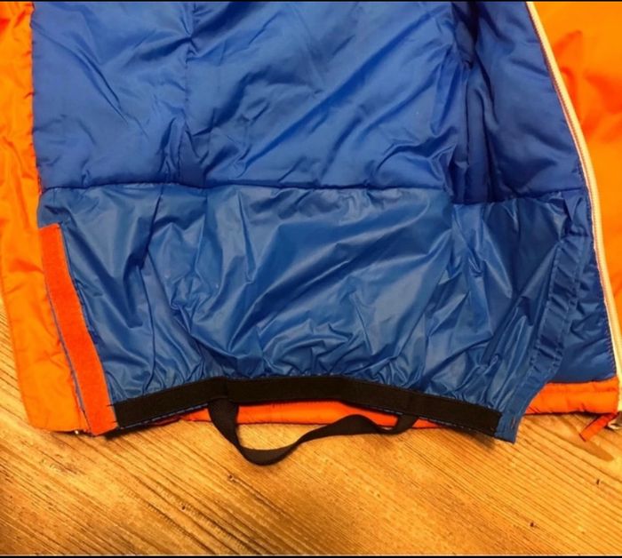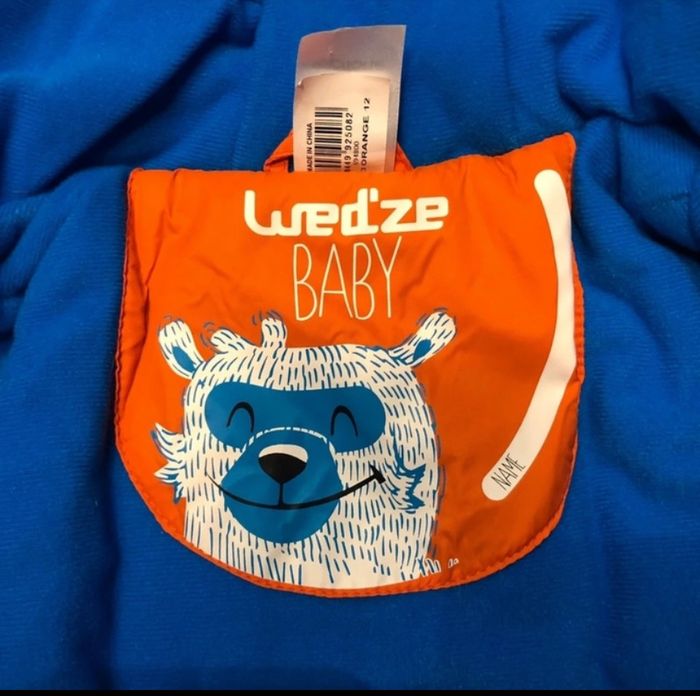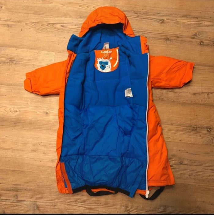 Combinaisons ski mixte 12 mois neuve Combinaison doublée et bien chaude imperméable - 500 warm Enfilage facile avec grande ouverture. Élastique aux chevilles pour bien resserrer et en dessous pour éviter à la neige de rentrer. Décathlon Wedze Jamais porté. Prix neuf 35€ Couleur orange intérieur bleu motif ours polaire ourson Mixte fille ou garçon taille 12 mois 1 an 71-77 cm