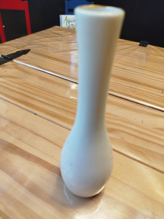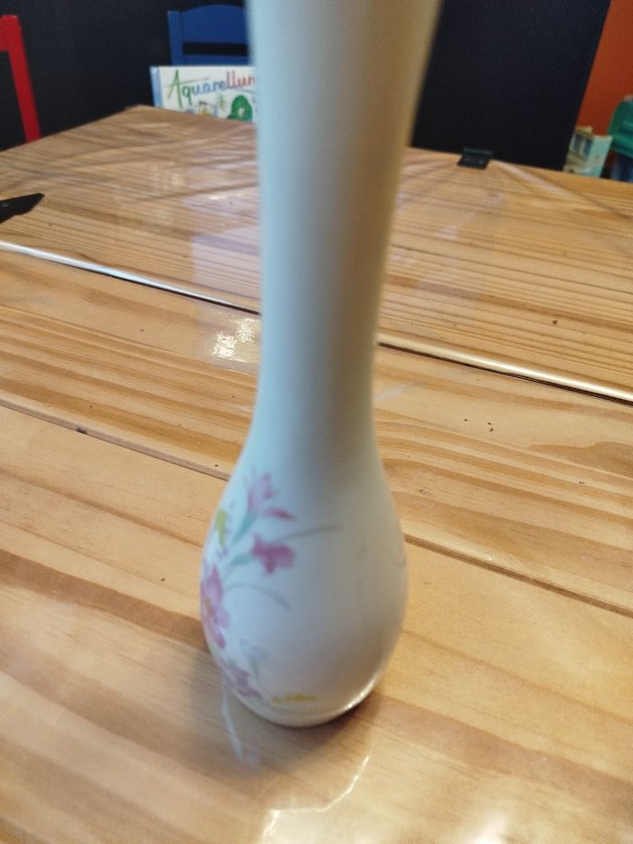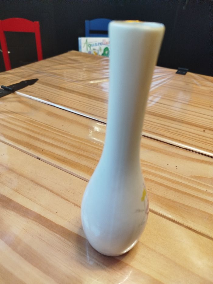 Petit vase motif fleur couleur blanc hauteur 19.5 cm ouverture 3 cm