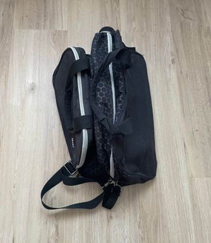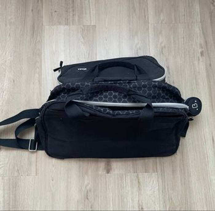 Sac à langer Béaba noir en bon état, avec plusieurs accessoires. Abîmé au 4 coins mais peut encore très bien servir