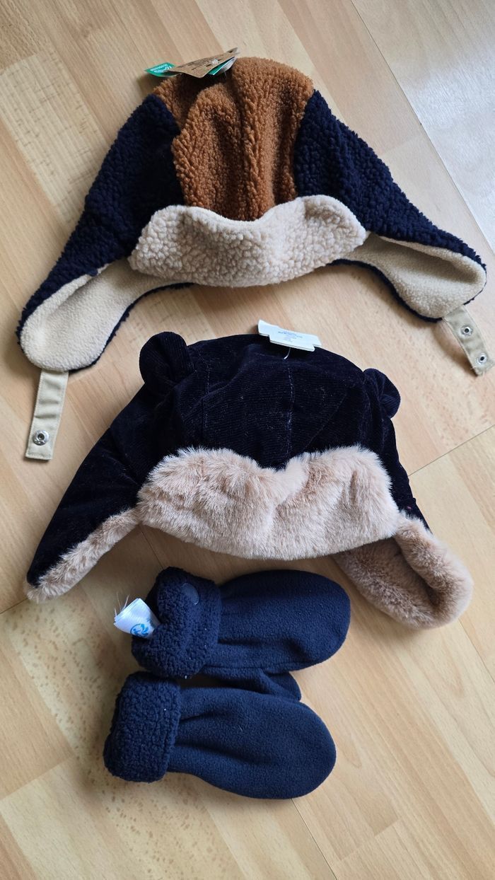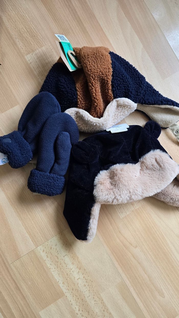 DERNIERS JOURS...(Neufs non portés) 🥰😍💙 lot  bonnets sherpa,moufles 3/4ans 4/6ans Garçon 😍🥰💙 - photo numéro 2