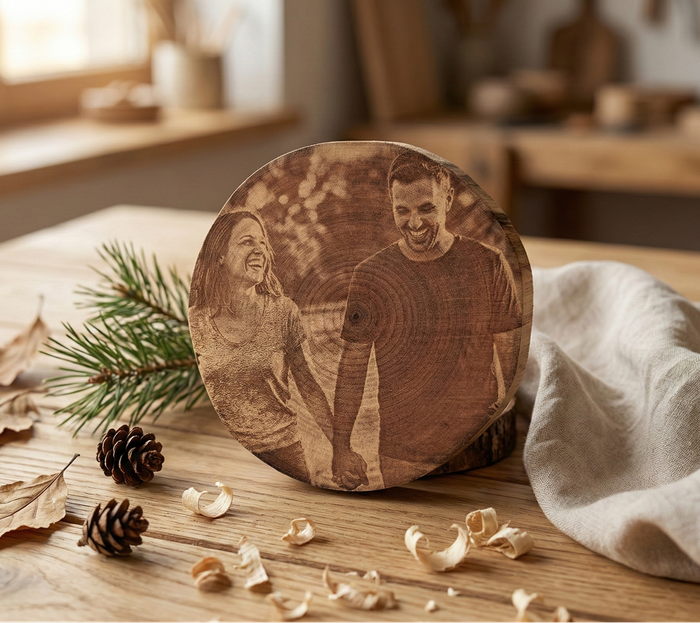 Transformez vos photos préférées en un objet unique ! Je réalise des gravures laser sur de véritables rondins de bois. Idéal comme dessous de verre ou simple décoration.pour un mariage, un anniversaire ou la Saint-Valentin.Envoyez-moi votre photo, je m'occupe du reste
