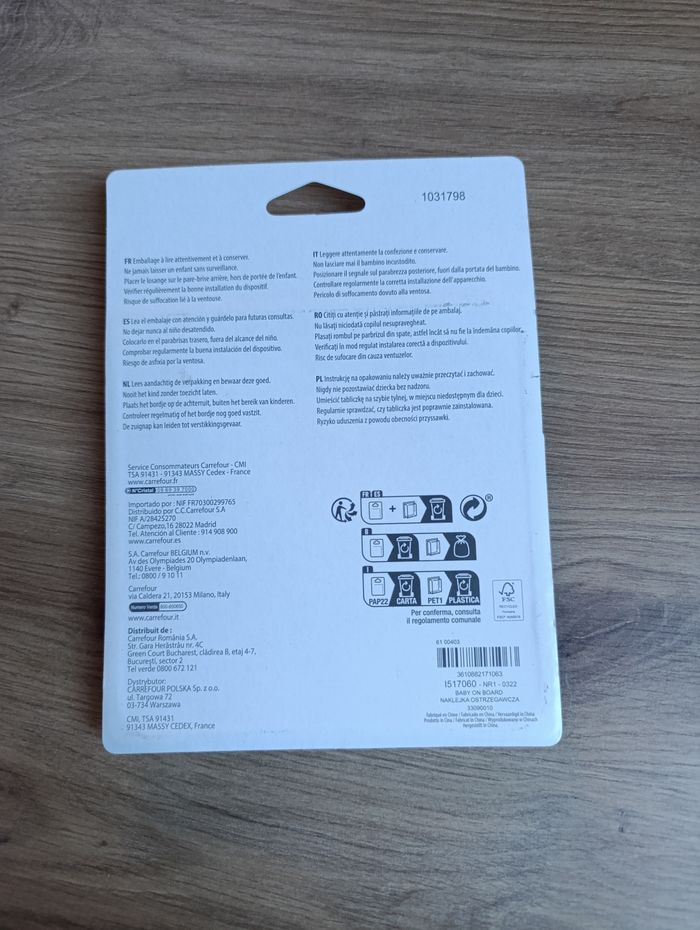 Losange « Bébé à bord » à ventouse. Neuf dans emballage d'origine.