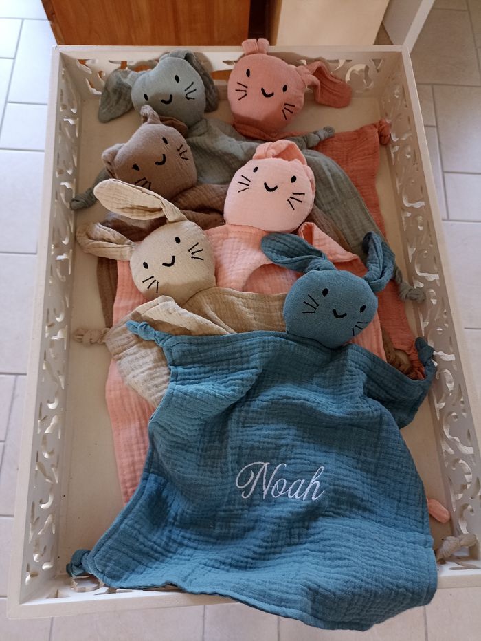 Doudou lapin gaze de coton  - photo numéro 6
