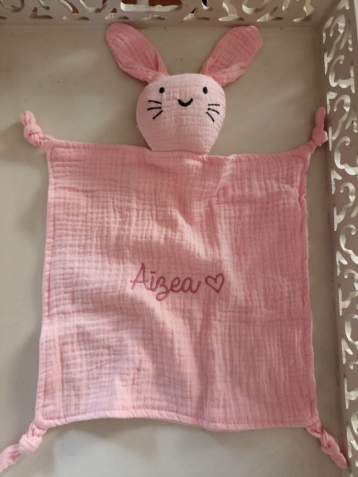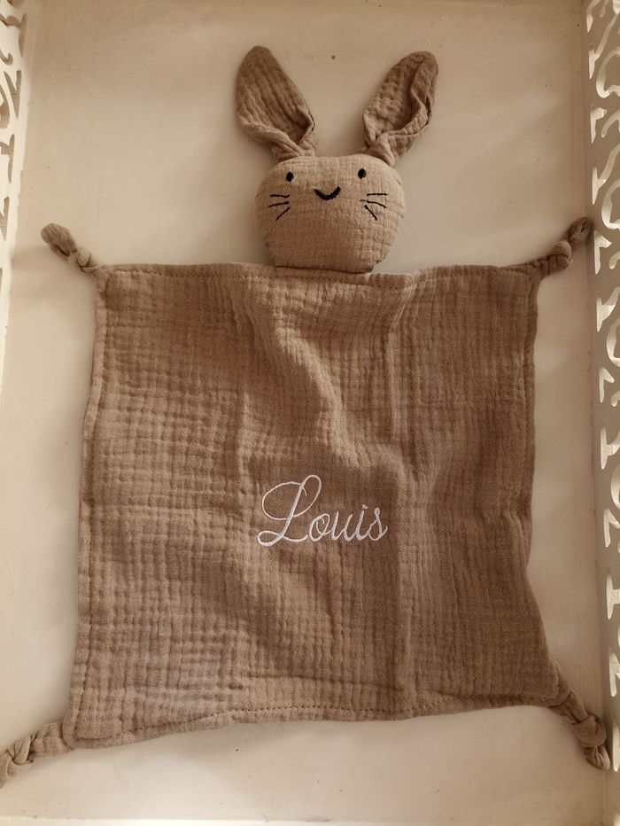 Doudou lapin gaze de coton  - photo numéro 1