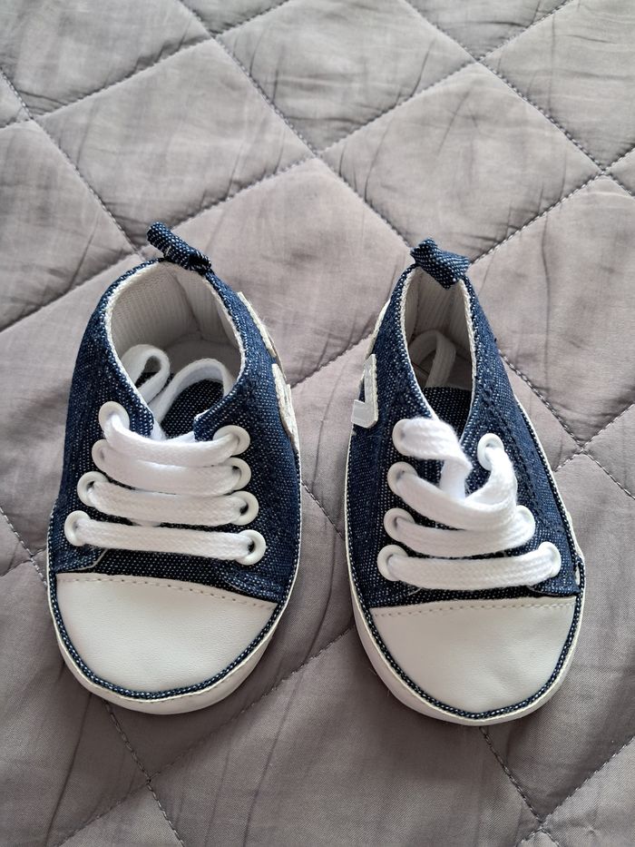Petites baskets style "Converse" bleues et blanches - Taille Naissance - photo numéro 1
