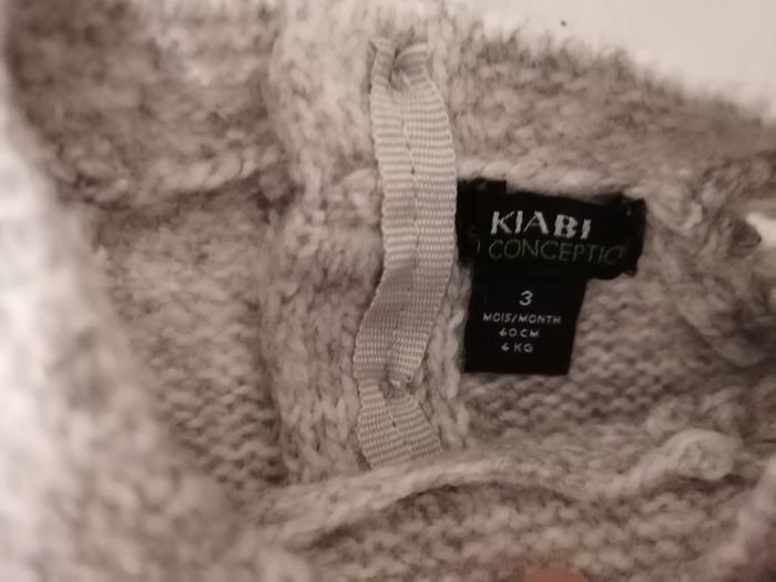 Pull gris, taille 3 mois, marque Kiabi, en bon état.