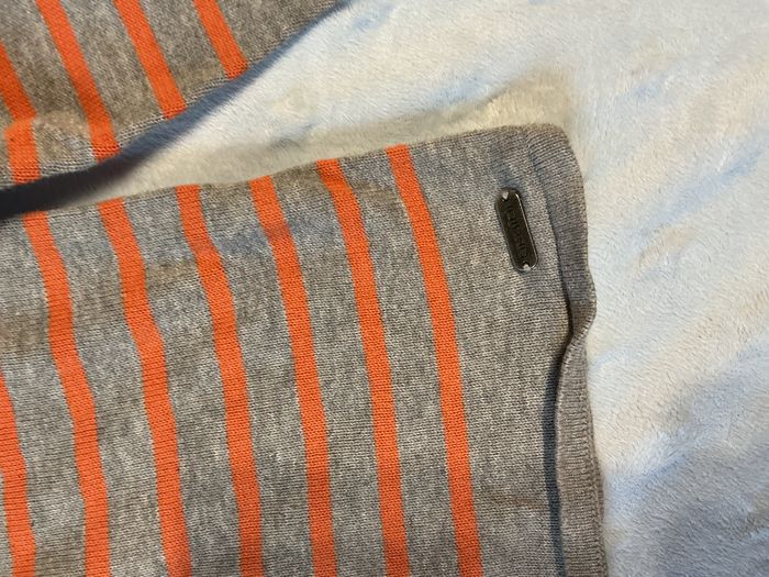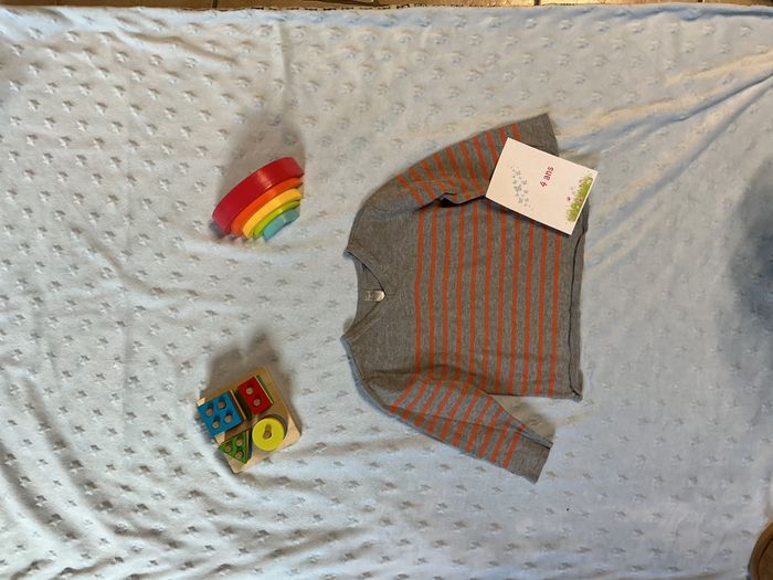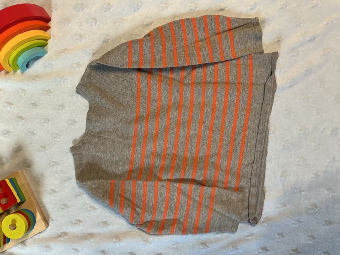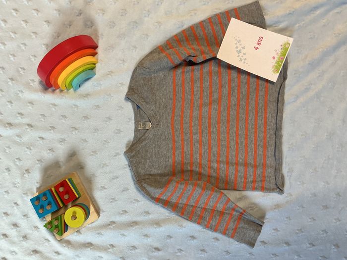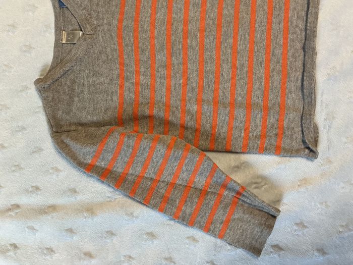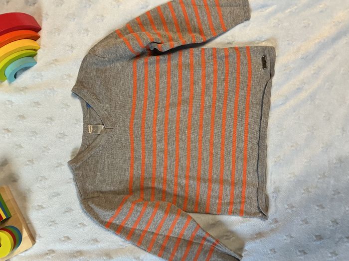 pull léger col V gris rayé orange okaidi 4 ans - photo numéro 2