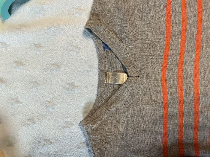 pull léger col V gris rayé orange okaidi 4 ans - photo numéro 6